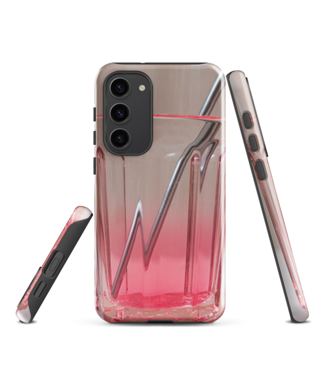 Tauchen Sie mit unserer Samsung Grenadine Shell in eine faszinierende visuelle Illusion ein Les Francophones. Inspiriert von einem Granatglas mit einem Metallstroh bietet diese Hülle einen originellen und markanten optischen Effekt.