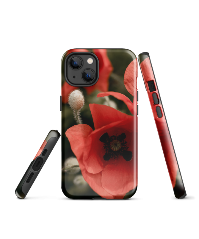 Fügen Sie Ihrem iPhone einen Hauch von Frische und floraler Eleganz mit der iPhone-Schale "All Coquelicot Les Francophones", inspiriert von einem nahaufnahme foto dieser zarten roten blumen.