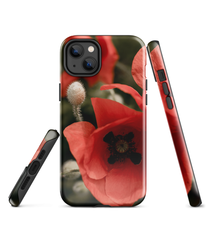 Fügen Sie Ihrem iPhone einen Hauch von Frische und floraler Eleganz mit der iPhone-Schale "All Coquelicot Les Francophones", inspiriert von einem nahaufnahme foto dieser zarten roten blumen.