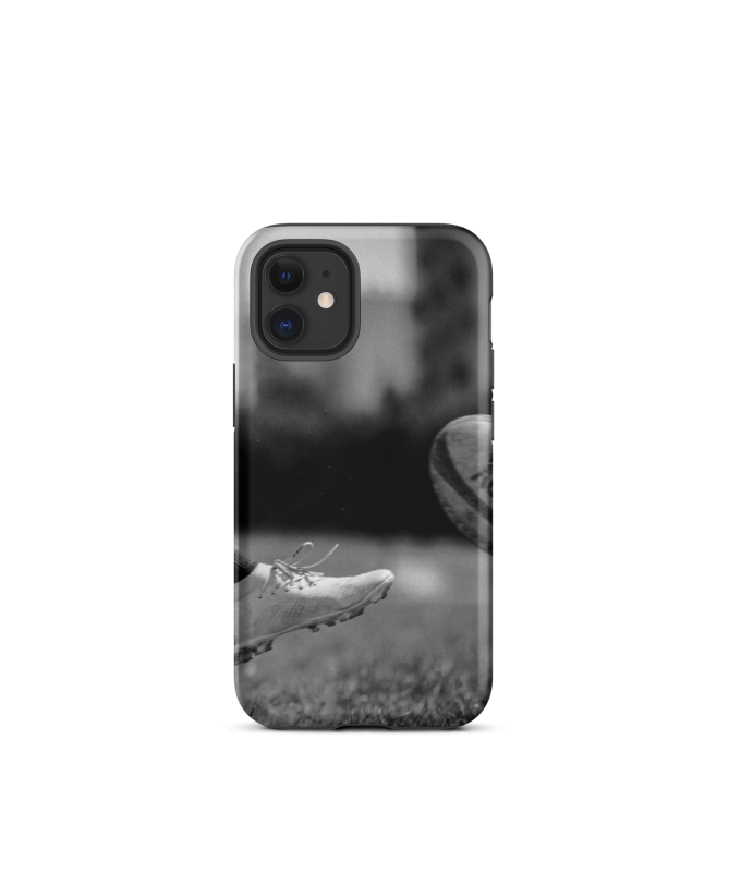 Zeigen Sie Ihre Leidenschaft für Rugby mit dem iPhone BUT Rumpf Les Francophones, mit einem ball bereit, zwischen den pfosten gezogen werden, in einer eleganten ästhetik in schwarz und weiß. Ein funktionales und stilvolles Accessoire für Fans dieses legendären Sports.
