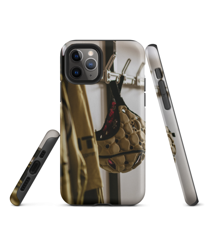 Erfassen Sie den Geist von Rugby mit dem iPhone SACQUE Les Francophones, hervorhebung eines legendären helms dieses sports in den wechselnden räumen der spieler. Eine perfekte Mischung aus sportlicher Leidenschaft und elegantem Schutz für Ihr Telefon