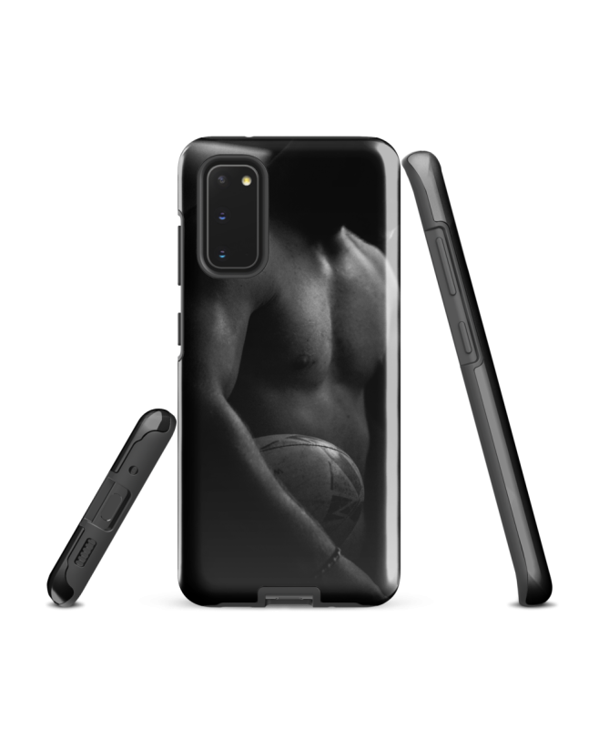Zeigen Sie Ihre Leidenschaft für Rugby mit Eleganz dank der Samsung TORSE Shell Les Francophones. Ein schwarzes und weißes Foto eines Rugby-Spieler Torso erfasst die Kraft des Sports,...