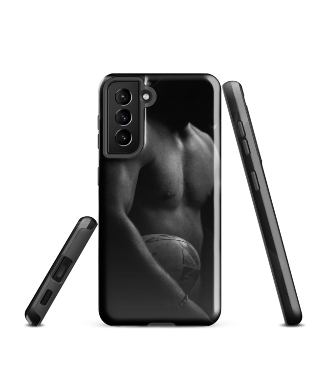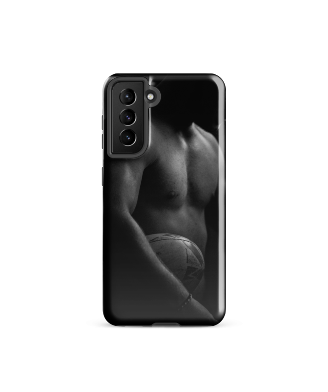 Zeigen Sie Ihre Leidenschaft für Rugby mit Eleganz dank der Samsung TORSE Shell Les Francophones. Ein schwarzes und weißes Foto eines Rugby-Spieler Torso erfasst die Kraft des Sports,...