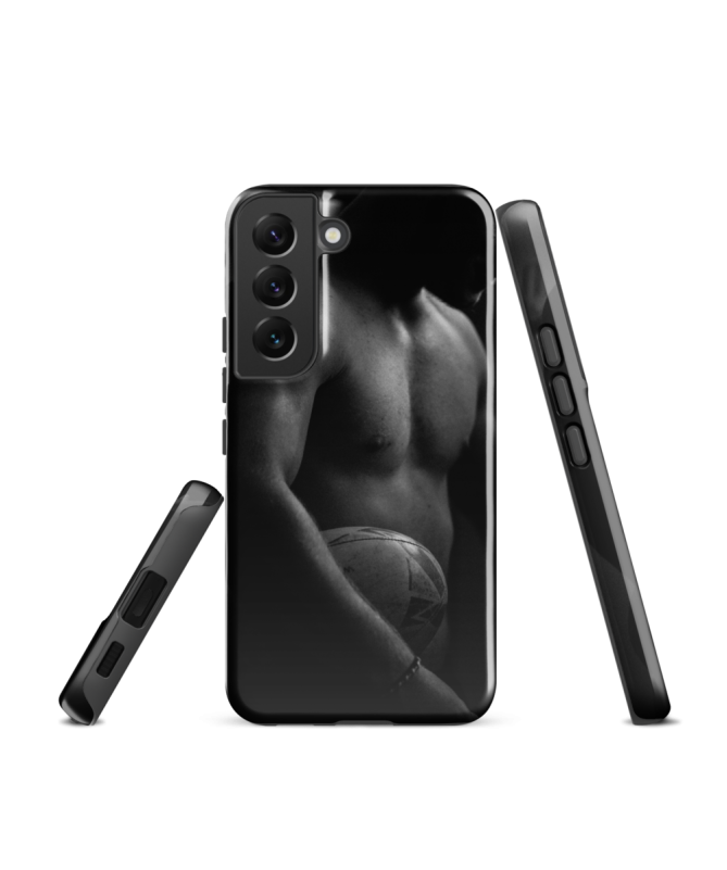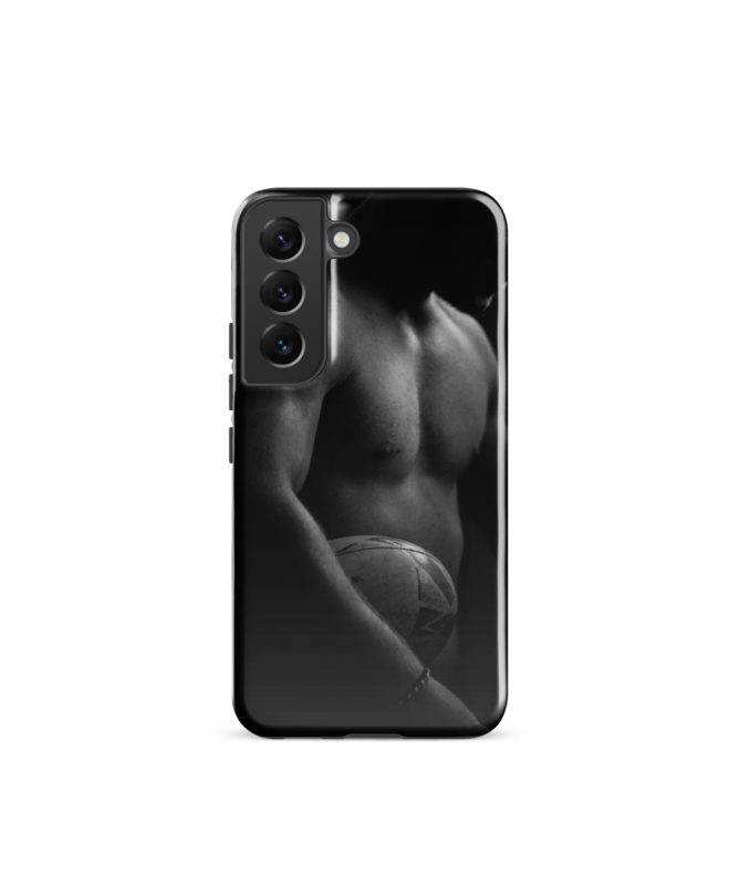Zeigen Sie Ihre Leidenschaft für Rugby mit Eleganz dank der Samsung TORSE Shell Les Francophones. Ein schwarzes und weißes Foto eines Rugby-Spieler Torso erfasst die Kraft des Sports,...