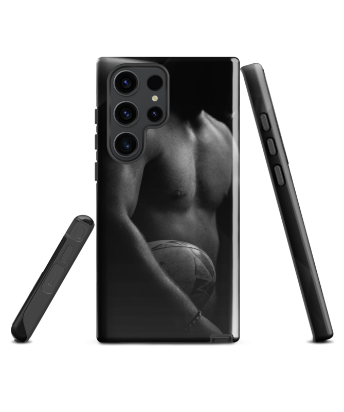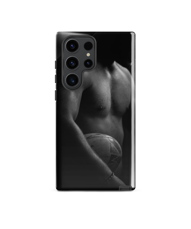 Zeigen Sie Ihre Leidenschaft für Rugby mit Eleganz dank der Samsung TORSE Shell Les Francophones. Ein schwarzes und weißes Foto eines Rugby-Spieler Torso erfasst die Kraft des Sports,...