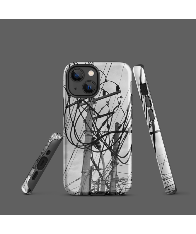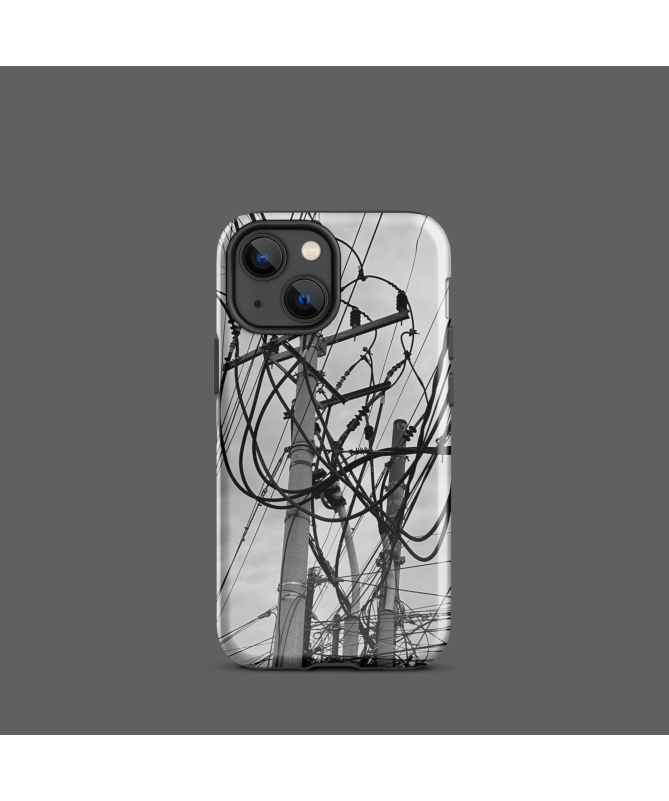 Entdecken Sie die iPhone-Hülle FREDB CABLE, in der das kunstvolle Gewirr der Stromkabel Balis einen beeindruckenden grafischen Effekt erzeugt, eingefangen von unserem Partnerfotografen...