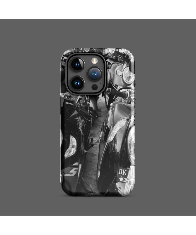 Tauchen Sie ein in die Essenz von Bali mit unserem FREDB SCOOT iPhone Coque, die Frucht der Zusammenarbeit mit dem renommierten Fotografen FRED BALISTER. Diese Schale verkörpert die blühende Energie des balinesischen städtischen Lebens, gefangen in einem auffälligen Foto eines Roller-Parkplatzes. Die künstlerische Verschränkung dieser Roller schafft eine einzigartige visuelle Komposition, die den dornigen Rhythmus des täglichen Lebens in Bali hervorruft.