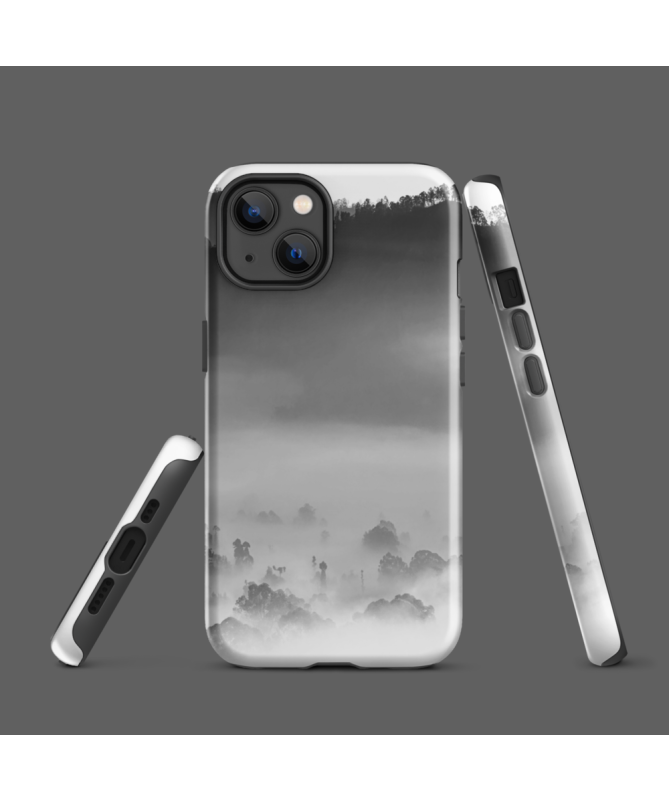 Erkunden Sie den balinesischen Himmel mit der FREDB NUAGE iPhone-Hülle, einem atemberaubenden Schwarz-Weiß-Foto der Bali-Berge, die majestätisch über den Wolken aufragen.