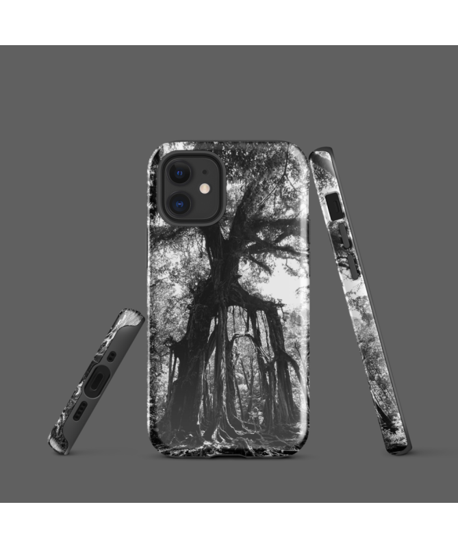 FREDB TREE iPhone-Hülle: Eine Ode an die Majestät der balinesischen Natur, eingefangen in Schwarzweiß für ein einzigartiges visuelles Erlebnis.