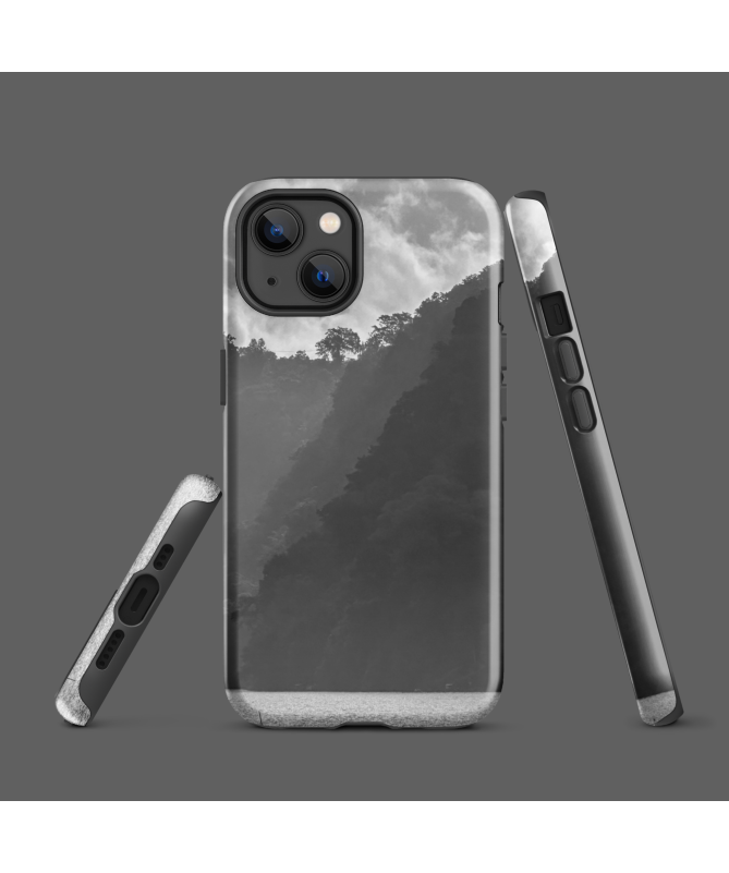 Entdecken Sie die Majestät der balinesischen Berge mit der FREDB FALAISE iPhone-Hülle und fangen Sie die Erhabenheit der Klippen in Schwarz und Weiß ein – eine perfekte Symbiose aus...