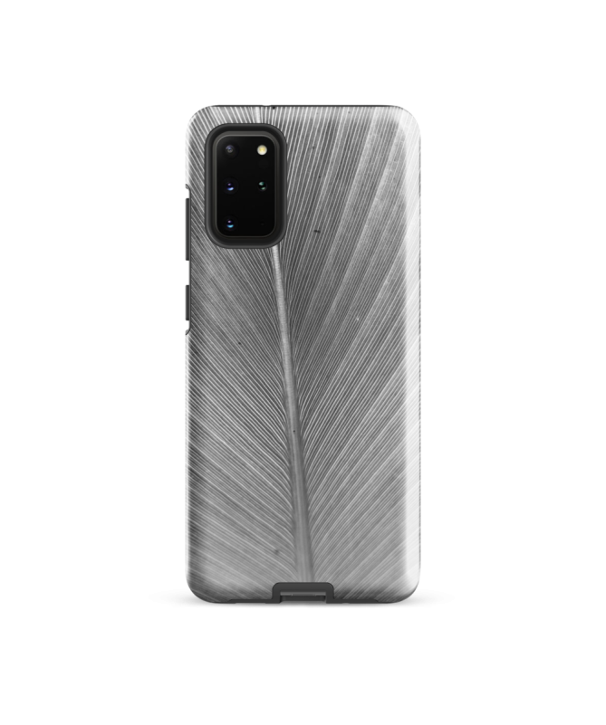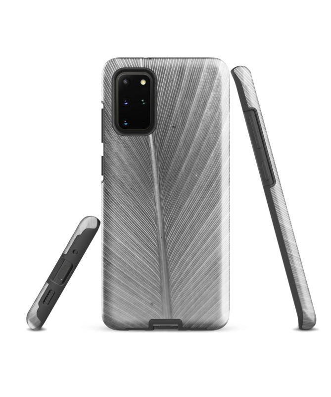 Entdecken Sie die beeindruckende Ästhetik der Natur mit der Samsung FREDB PALME-Hülle mit einem Schwarz-Weiß-Nahaufnahmefoto eines Palmblatts. Natürliche Eleganz zum...
