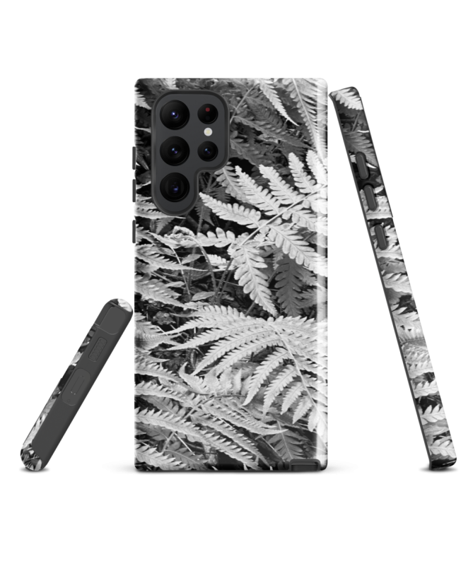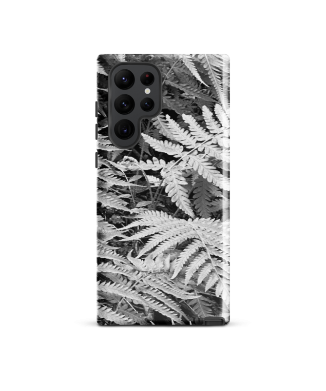 Tauchen Sie mit der Samsung FREDB FOUGÈRE-Hülle in die faszinierende Welt der balinesischen Natur ein und fangen Sie die Zartheit eines Farns in Schwarz und Weiß ein.