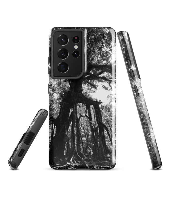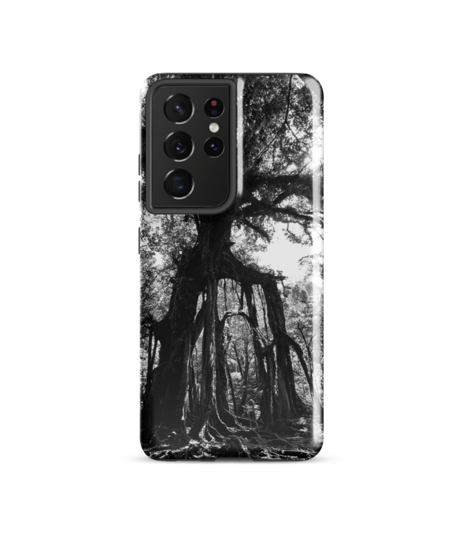 Samsung FREDB TREE Case: Eine Ode an die Majestät der balinesischen Natur, eingefangen in Schwarzweiß für ein einzigartiges visuelles Erlebnis.