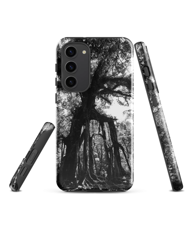 Samsung FREDB TREE Case: Eine Ode an die Majestät der balinesischen Natur, eingefangen in Schwarzweiß für ein einzigartiges visuelles Erlebnis.