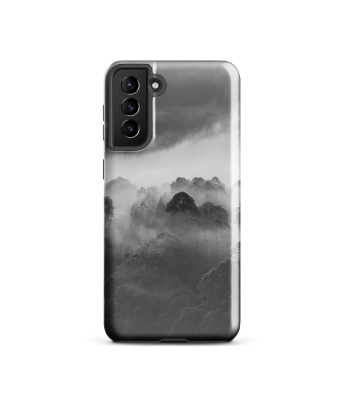 Entdecken Sie die geheimnisvolle Schönheit des balinesischen Dschungels mit der Samsung FREDB BRUME Hülle, einer schwarz-weißen Kreation, die Sie mitten in die exotische Natur Balis entführt