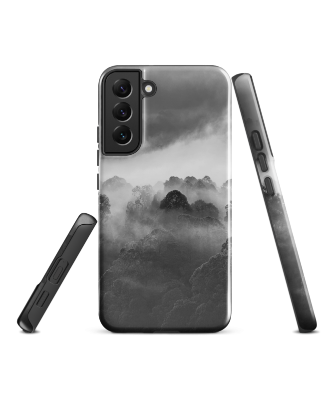 Entdecken Sie die geheimnisvolle Schönheit des balinesischen Waldes mit der Samsung FREDB POINTE-Hülle und fangen Sie in Schwarzweiß die rätselhafte Silhouette eines Baumes ein, der aus...