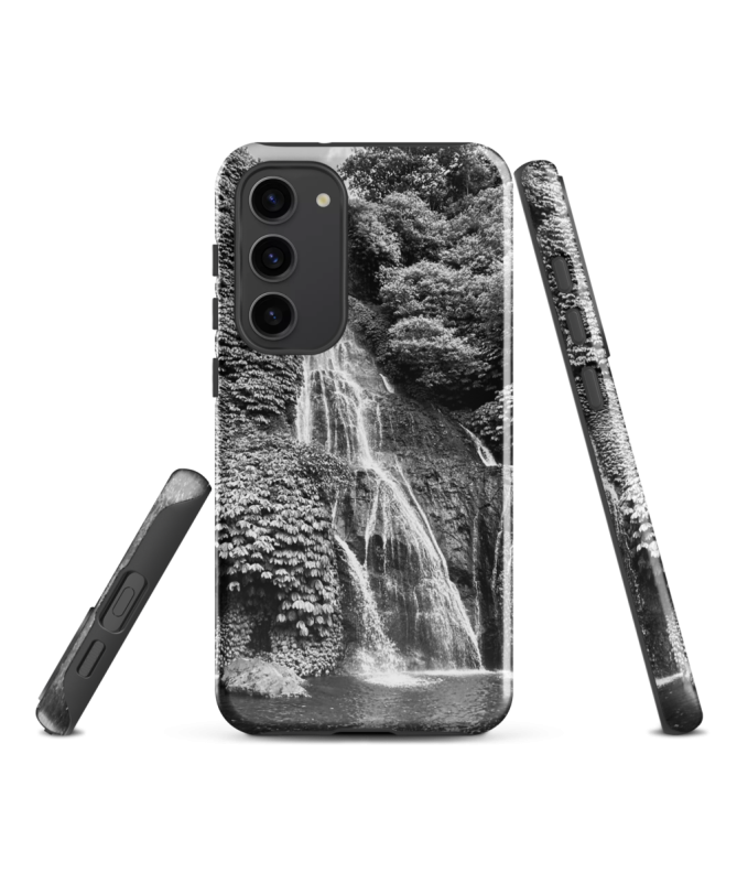 Entdecken Sie die Majestät Balis mit der Samsung FREDB NIAGARA-Hülle und fangen Sie die Essenz exotischer Wasserfälle in Schwarz und Weiß ein.