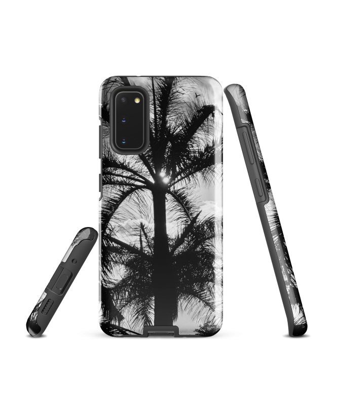 Die FREDB SPIDER Samsung-Hülle: Erinnern Sie sich an die geheimnisvolle Schönheit Balis mit diesem Schwarz-Weiß-Foto einer Palme von FRED BALISTER, das an die eleganten Beine einer...