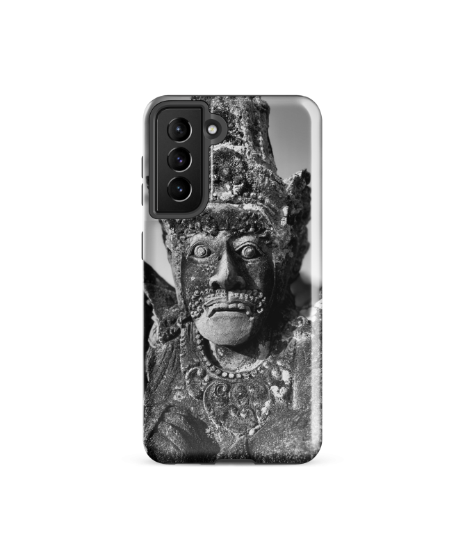 Entdecken Sie die FREDB REGARD Samsung-Hülle, inspiriert von einem Schwarz-Weiß-Foto einer faszinierenden Steinstatue aus Bali. Verleihen Sie Ihrem Telefon mit dieser Fotoarbeit von FRED...