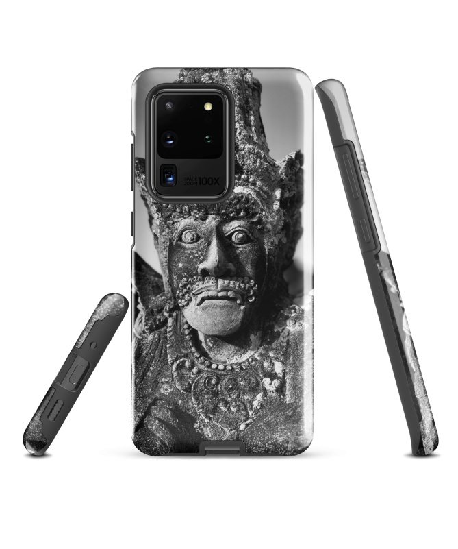 Entdecken Sie die FREDB REGARD Samsung-Hülle, inspiriert von einem Schwarz-Weiß-Foto einer faszinierenden Steinstatue aus Bali. Verleihen Sie Ihrem Telefon mit dieser Fotoarbeit von FRED...
