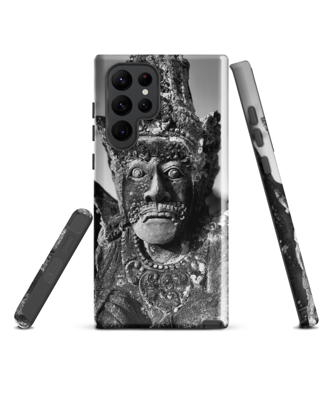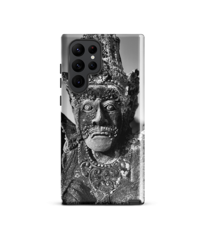 Entdecken Sie die FREDB REGARD Samsung-Hülle, inspiriert von einem Schwarz-Weiß-Foto einer faszinierenden Steinstatue aus Bali. Verleihen Sie Ihrem Telefon mit dieser Fotoarbeit von FRED...