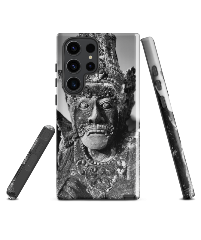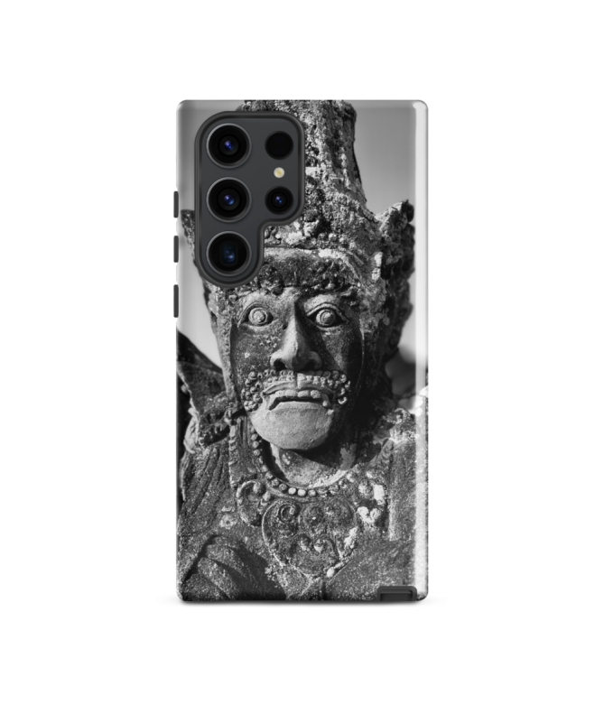 Entdecken Sie die FREDB REGARD Samsung-Hülle, inspiriert von einem Schwarz-Weiß-Foto einer faszinierenden Steinstatue aus Bali. Verleihen Sie Ihrem Telefon mit dieser Fotoarbeit von FRED...