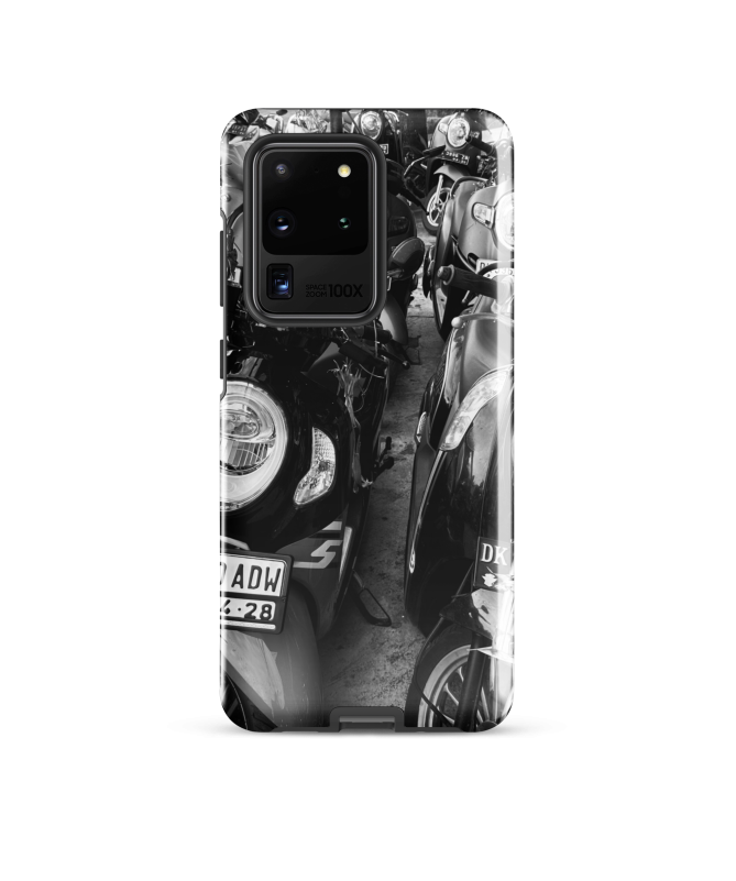 Tauchen Sie ein in die Essenz von Bali mit unserer Samsung FREDB SCOOT Shell, die Frucht der Zusammenarbeit mit unserem Partner Fotograf FRED BALISTER. Diese Schale verkörpert die blühende Energie des balinesischen städtischen Lebens, gefangen in einem auffälligen Foto eines Roller-Parkplatzes. Die künstlerische Verschränkung dieser Roller schafft eine einzigartige visuelle Komposition, die den dornigen Rhythmus des täglichen Lebens in Bali hervorruft.