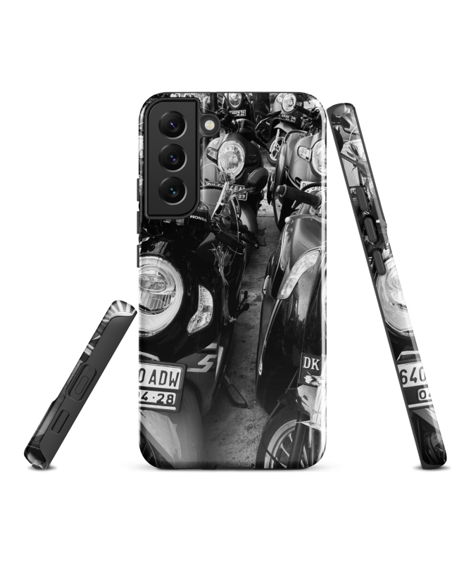 Tauchen Sie ein in die Essenz von Bali mit unserer Samsung FREDB SCOOT Shell, die Frucht der Zusammenarbeit mit unserem Partner Fotograf FRED BALISTER. Diese Schale verkörpert die blühende Energie des balinesischen städtischen Lebens, gefangen in einem auffälligen Foto eines Roller-Parkplatzes. Die künstlerische Verschränkung dieser Roller schafft eine einzigartige visuelle Komposition, die den dornigen Rhythmus des täglichen Lebens in Bali hervorruft.