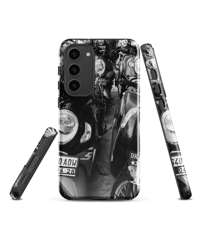Tauchen Sie ein in die Essenz von Bali mit unserer Samsung FREDB SCOOT Shell, die Frucht der Zusammenarbeit mit unserem Partner Fotograf FRED BALISTER. Diese Schale verkörpert die blühende Energie des balinesischen städtischen Lebens, gefangen in einem auffälligen Foto eines Roller-Parkplatzes. Die künstlerische Verschränkung dieser Roller schafft eine einzigartige visuelle Komposition, die den dornigen Rhythmus des täglichen Lebens in Bali hervorruft.
