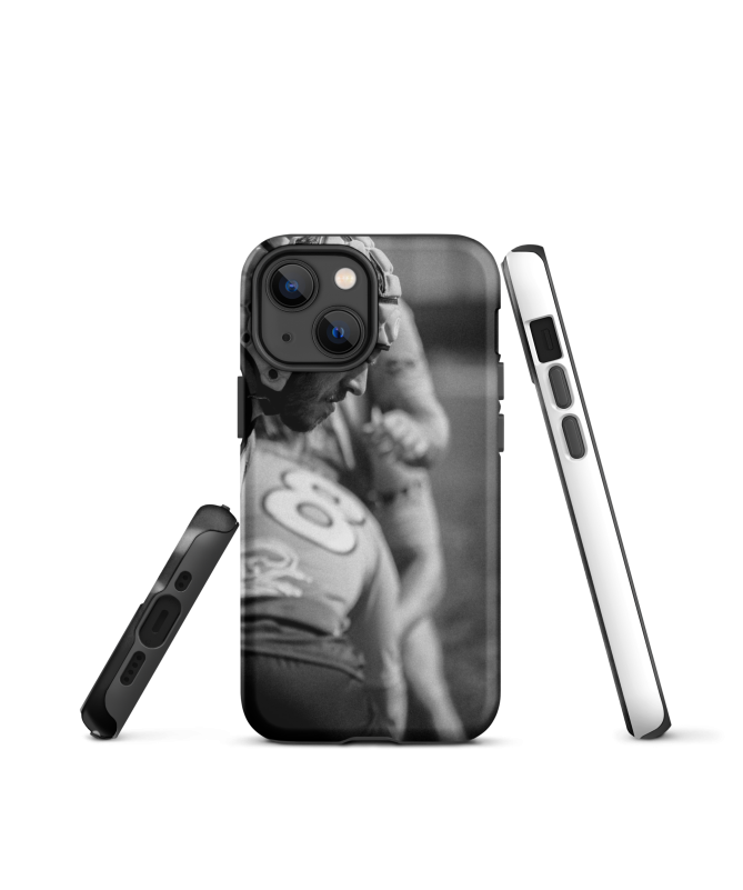 Tauchen Sie mit dem iPhone RUCK in das Herz der rauhen Action ein Les Francophones. Diese Hülle, ein Teil unserer besonderen Rugby-Weltmeisterschaft in Frankreich, zeigt ein auffälliges schwarzes und weißes Foto eines Rucks in Formation. Eine dritte zentrale Linie wird von seinen Teamkollegen unterstützt, die die Intensität und Genosseschaft des Spiels erfassen.