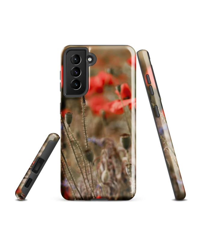Adopta la elegancia floral con el casco Samsung "Coquelicot Les Francophones", que captura la delicadeza hechizante de las papas en una protección refinada para tu teléfono.