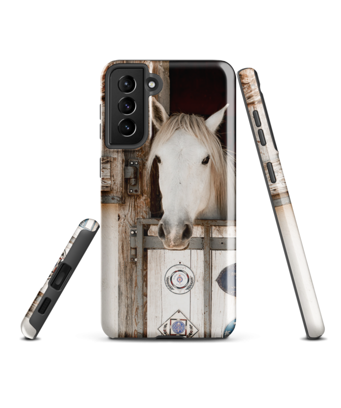 Captura la gracia del caballo de Camargue con el casco Samsung CHEVAL BLANC Les Francophones, una elegante protección para tu teléfono.