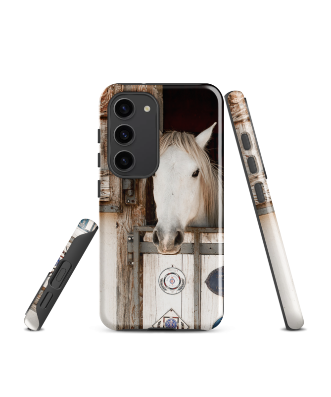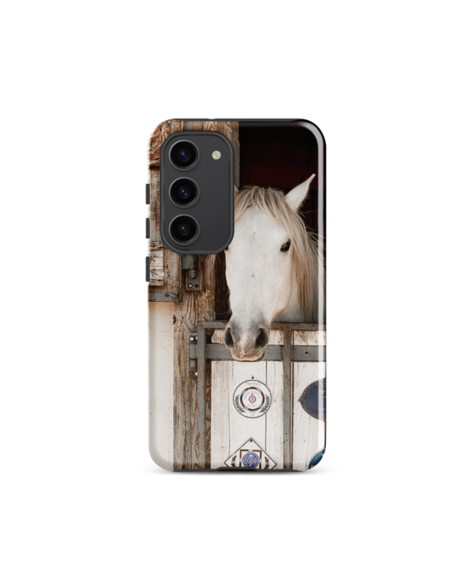 Captura la gracia del caballo de Camargue con el casco Samsung CHEVAL BLANC Les Francophones, una elegante protección para tu teléfono.