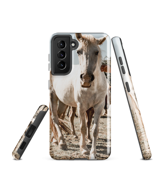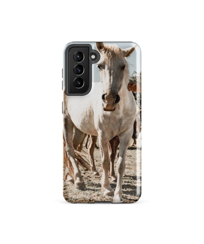 Captura la gracia del caballo de Camargue con el casco Samsung CHEVAL BLANC Les Francophones, una elegante protección para tu teléfono.
