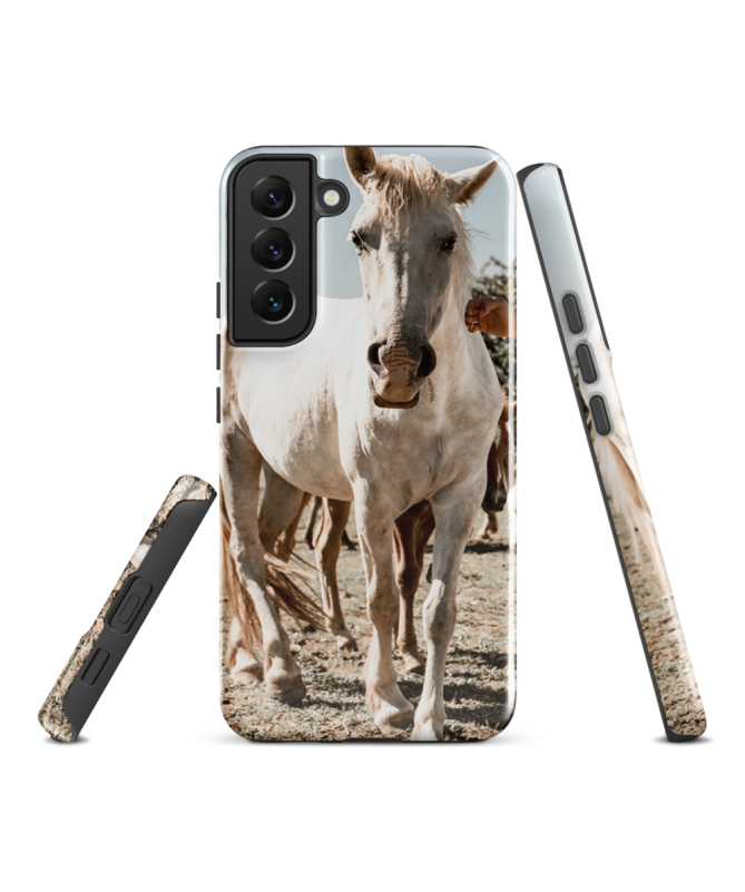Captura la gracia del caballo de Camargue con el casco Samsung CHEVAL BLANC Les Francophones, una elegante protección para tu teléfono.