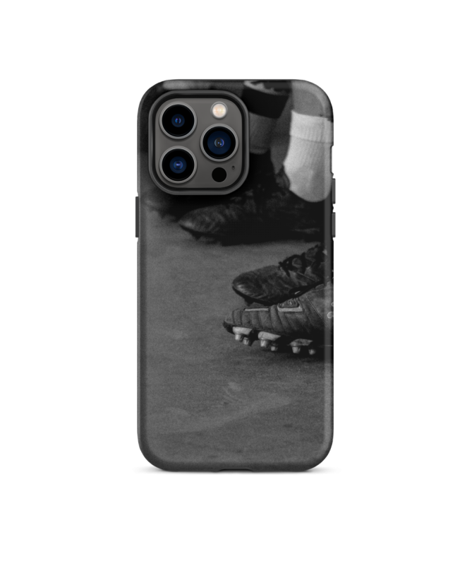 Muestren su pasión por el rugby con el iPhone de nuestra gama Copa Mundial de Rugby en Francia. Con una captivante imagen en blanco y negro, este casco pone de relieve los pinzas de los pies de los jugadores cuyas piernas sólo se ven.