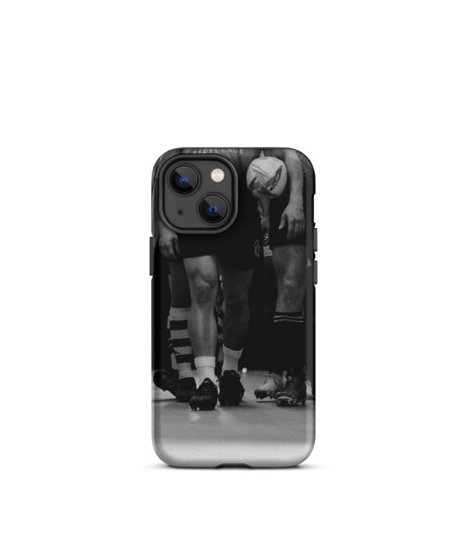 Experimenta la intensidad del rugby con el iPhone "RUCKBIS" Les Francophones, capturando la energía de un ruck en blanco y negro para los amantes del deporte.