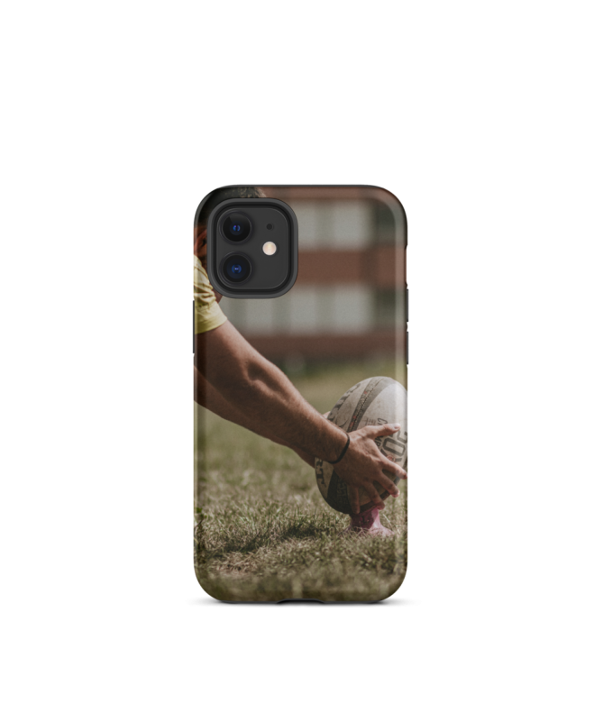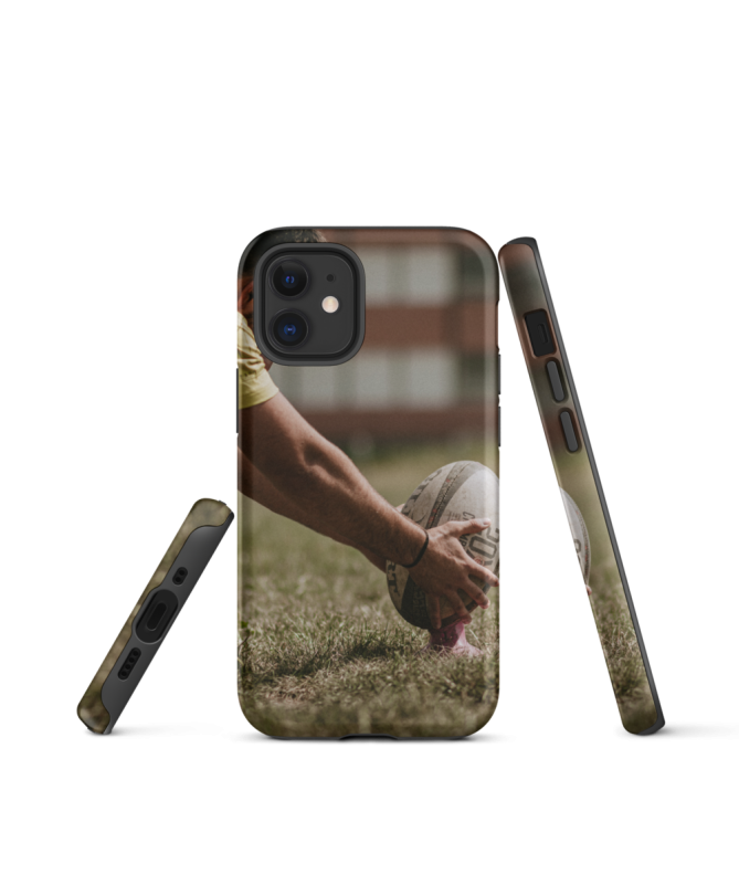 Opta por el casco del iPhone BALLTIR Los francófonos para tu teléfono, que captura el momento de preparación antes de un penalti de rugby, el posicionamiento minucioso del...