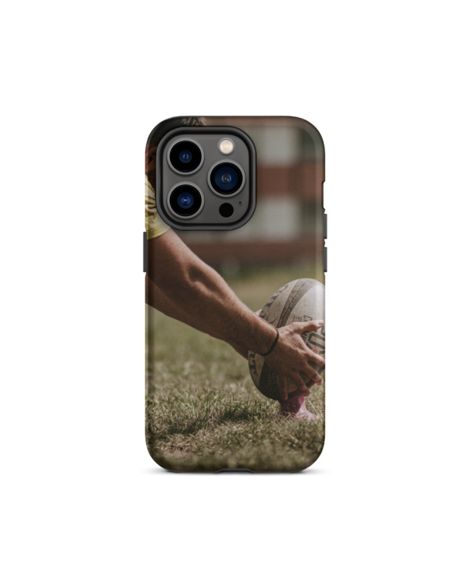 Opta por el casco del iPhone BALLTIR Los francófonos para tu teléfono, que captura el momento de preparación antes de un penalti de rugby, el posicionamiento minucioso del...