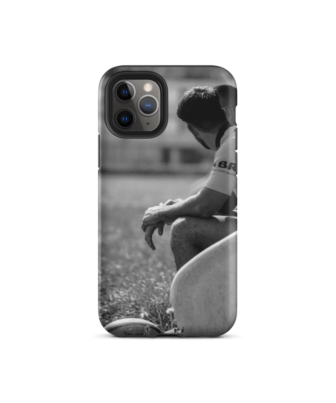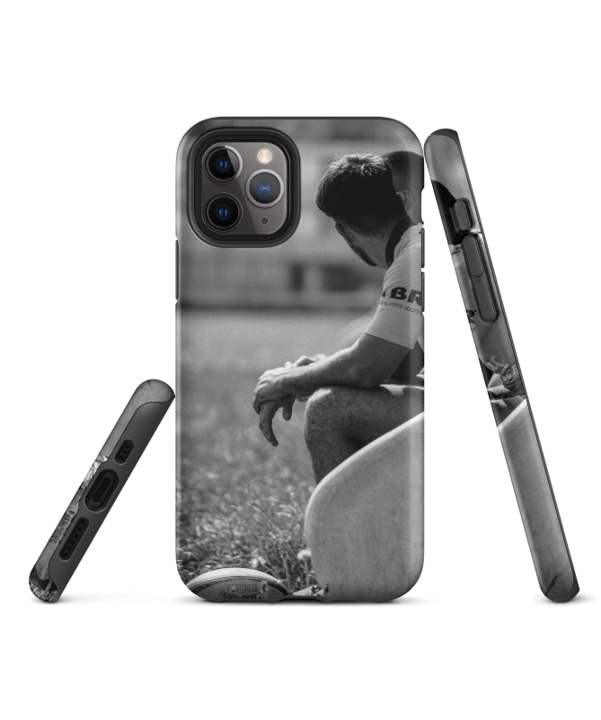 Muestra tu pasión por el rugby con la caja iPhone MAINBALL Los francófonos de nuestra gama Copa Mundial de Rugby, destacando a un jugador sosteniendo el balón con determinación. Una protección elegante para los fanáticos de este deporte emblemático.