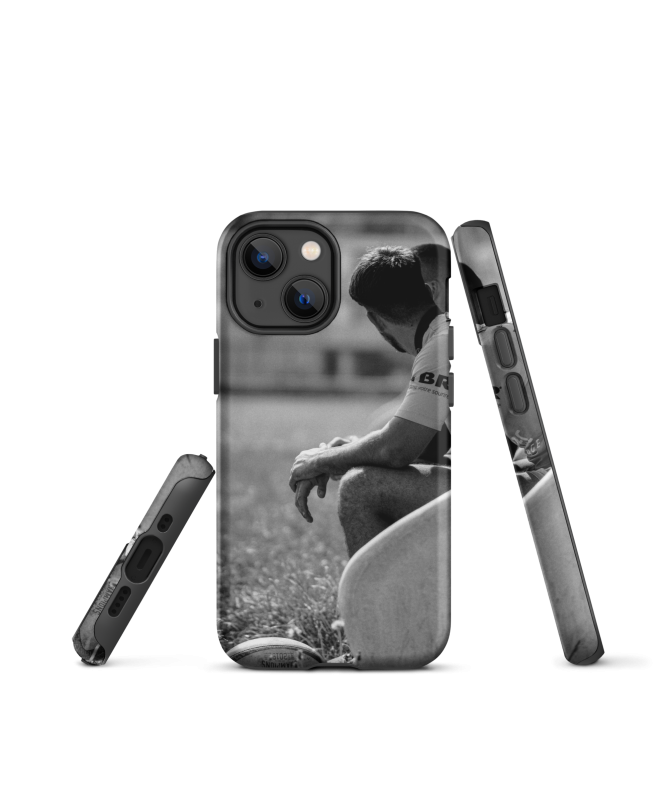 Muestra tu pasión por el rugby con la caja iPhone MAINBALL Los francófonos de nuestra gama Copa Mundial de Rugby, destacando a un jugador sosteniendo el balón con determinación. Una protección elegante para los fanáticos de este deporte emblemático.
