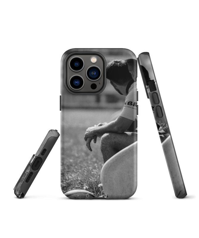 Sumérgete en el corazón del ambiente de la Copa Mundial de Rugby en Francia con el iPhone BANC Les Francophones. Inspirada en una foto en blanco y negro, captura un momento auténtico en el que un jugador sustituto espera tranquilamente en el banquillo, listo para unirse al juego en cualquier momento.