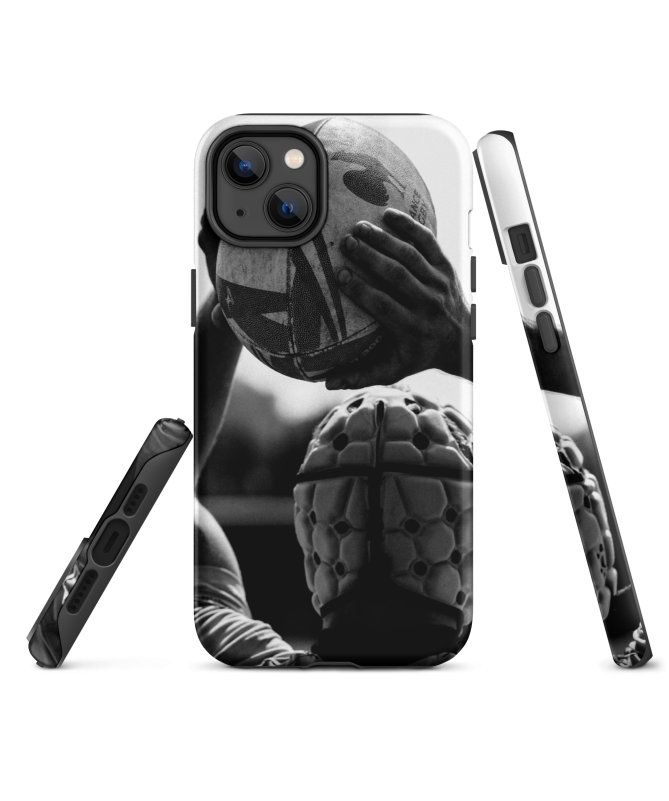 Exprese su pasión por el rugby con la carcasa "iPhone LANCE Les Francophones". Este casco único presenta una captivante fotografía en blanco y negro, grabando el momento exacto en que un talón lanza hábilmente el balón al tocarlo. La elegancia de este accesorio se dirige a los verdaderos aficionados a este deporte emblemático, añadiendo un toque de estilo a su teléfono mientras celebra la acción y la gracia del juego.
