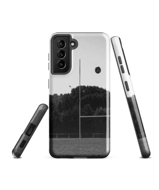 Opta por el casco Samsung BALLTIR Les Francophones para tu teléfono, que captura el momento de preparación antes de un penalti de rugby, el posicionamiento minucioso del balón.