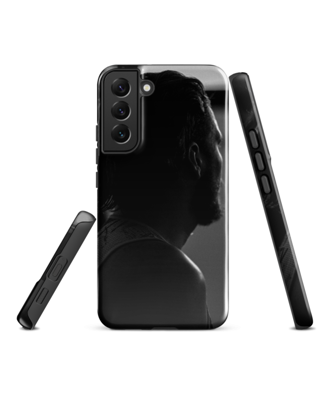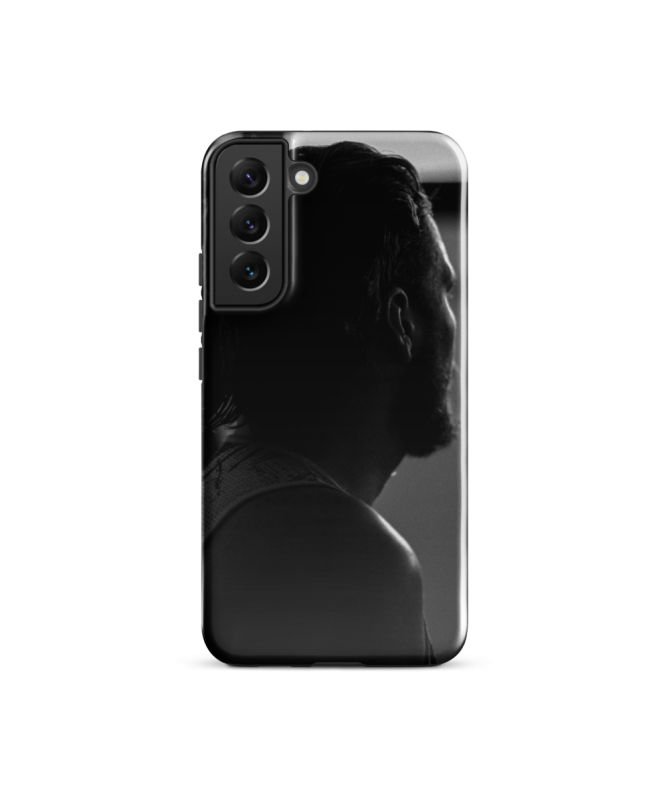 Muestre su pasión por el rugby con elegancia con el casco Samsung TORSE Les Francophones. Una foto en blanco y negro de un torso de jugador de rugby captura el poder del deporte, ofreciendo una protección superior a su teléfono mientras expresa su dedicación al rugby.