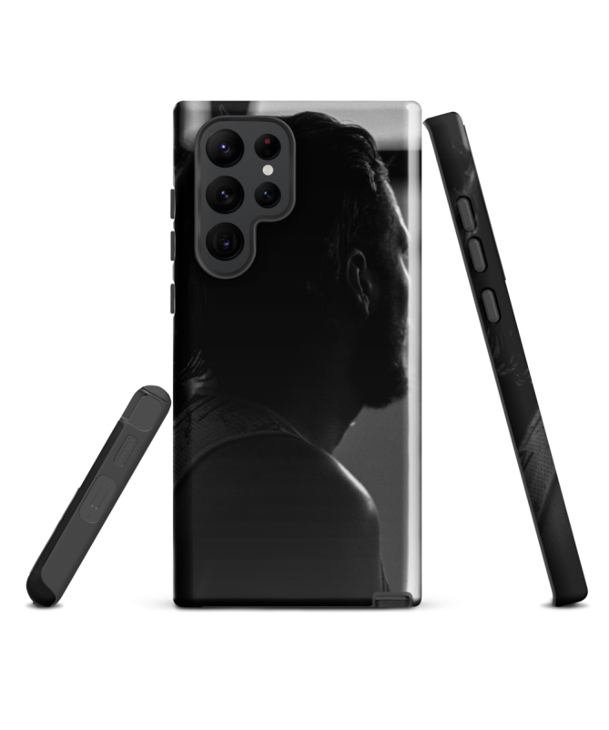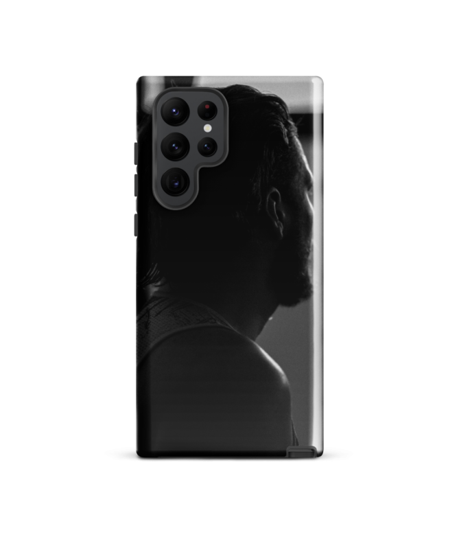 Muestre su pasión por el rugby con elegancia con el casco Samsung TORSE Les Francophones. Una foto en blanco y negro de un torso de jugador de rugby captura el poder del deporte, ofreciendo una protección superior a su teléfono mientras expresa su dedicación al rugby.