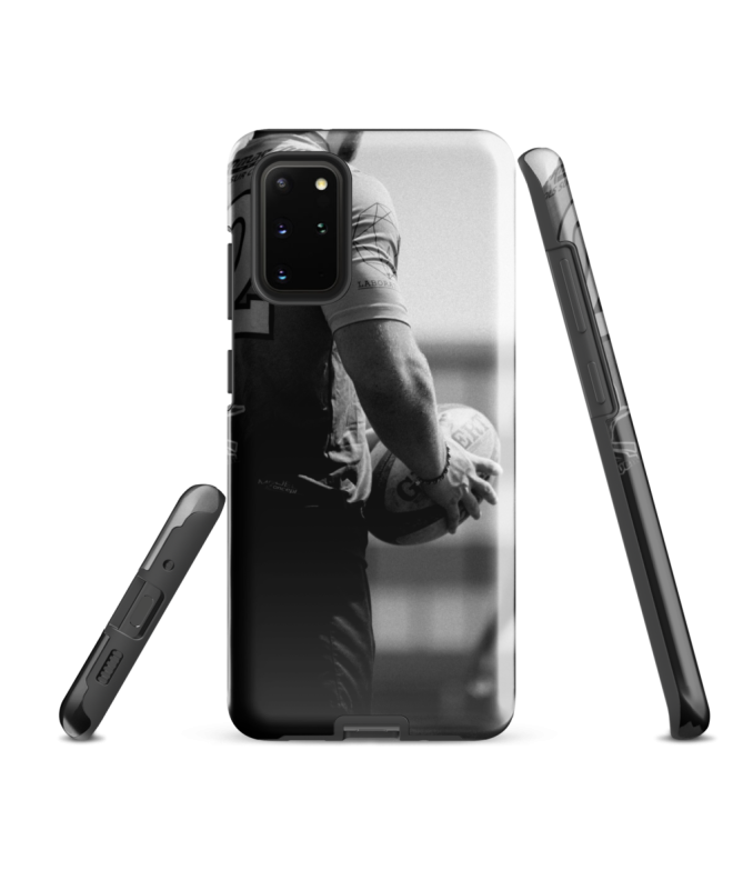 Muestra tu pasión por el rugby con el casco Samsung MAINBALL Les Francophones de nuestra gama de la Copa Mundial de Rugby, mostrando a un jugador sosteniendo el balón con determinación....