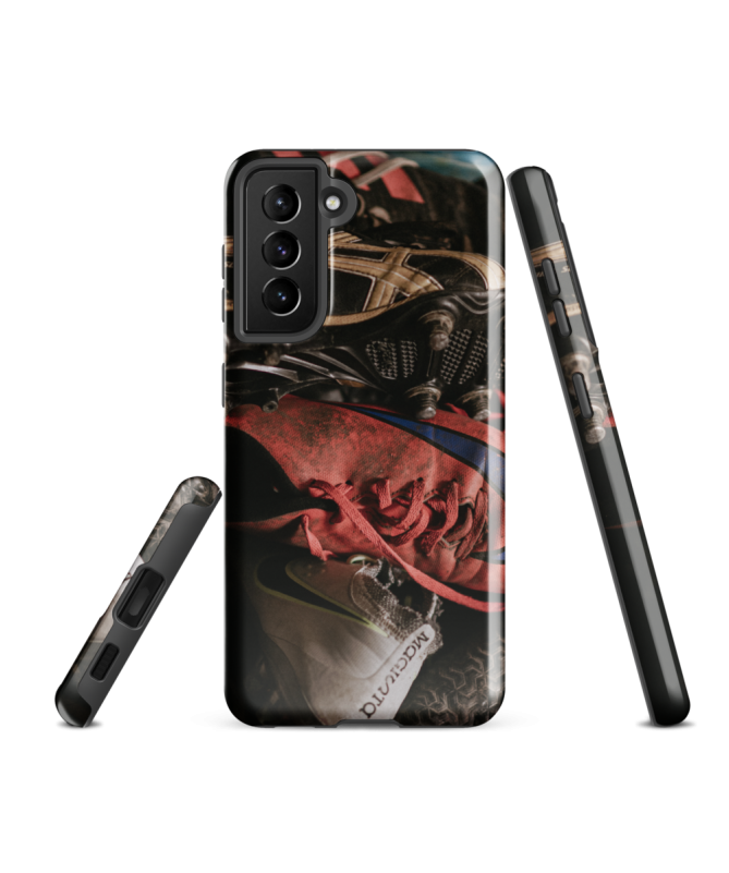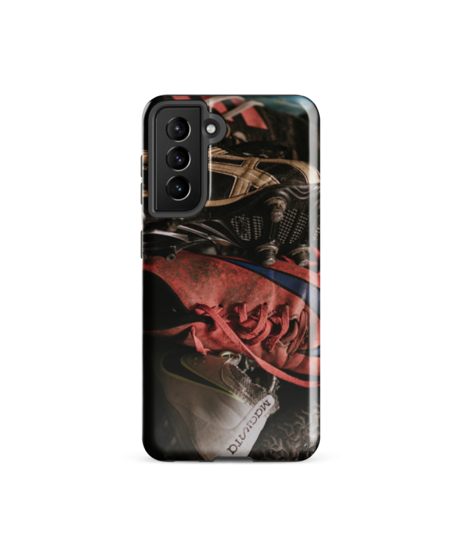 Sumérgete en el corazón de la acción de rugby con el casco Samsung CRAMPON Les Francophones. Esta pieza de la gama de la Copa Mundial de Rugby en Francia presenta una imagen de colores llamativos, que muestra una multitud de pinzas entrelazadas en primer plano. Muestre con orgullo su amor por el rugby mientras protege su teléfono con estilo y elegancia.