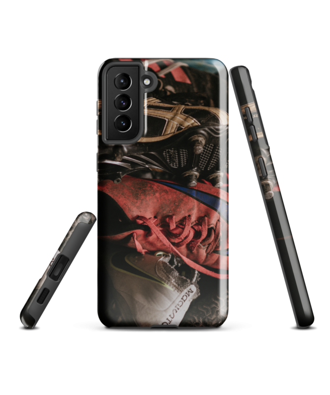 Sumérgete en el corazón de la acción de rugby con el casco Samsung CRAMPON Les Francophones. Esta pieza de la gama de la Copa Mundial de Rugby en Francia presenta una imagen de colores llamativos, que muestra una multitud de pinzas entrelazadas en primer plano. Muestre con orgullo su amor por el rugby mientras protege su teléfono con estilo y elegancia.