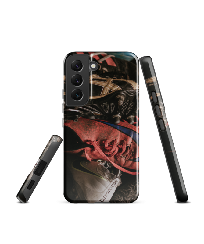 Sumérgete en el corazón de la acción de rugby con el casco Samsung CRAMPON Les Francophones. Esta pieza de la gama de la Copa Mundial de Rugby en Francia presenta una imagen de colores llamativos, que muestra una multitud de pinzas entrelazadas en primer plano. Muestre con orgullo su amor por el rugby mientras protege su teléfono con estilo y elegancia.